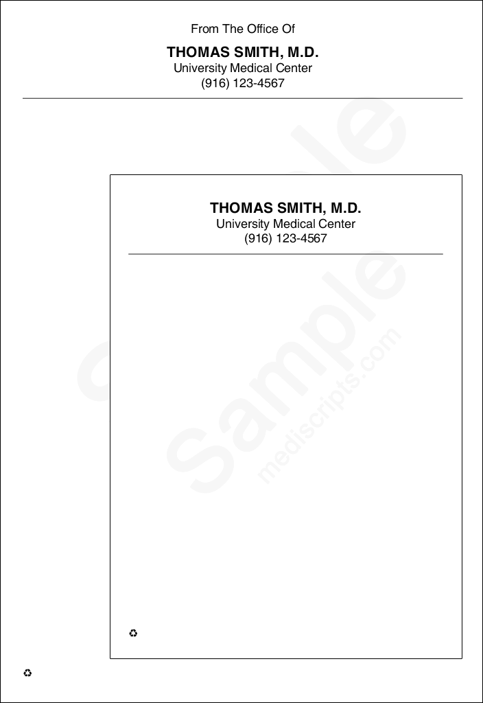 MediScripts now offers MediMemo pads. Get a set of personalized memo pads delivered to your practice within one week. MediMemo pads are produced on high quality plain white paper in our state-of-the-art digital production facility. MediMemos are personalized with your name or your name and address in two popular sizes 4" x 5 ½" or 5 ½" x 8" which makes them easily carried in a pocket or purse!